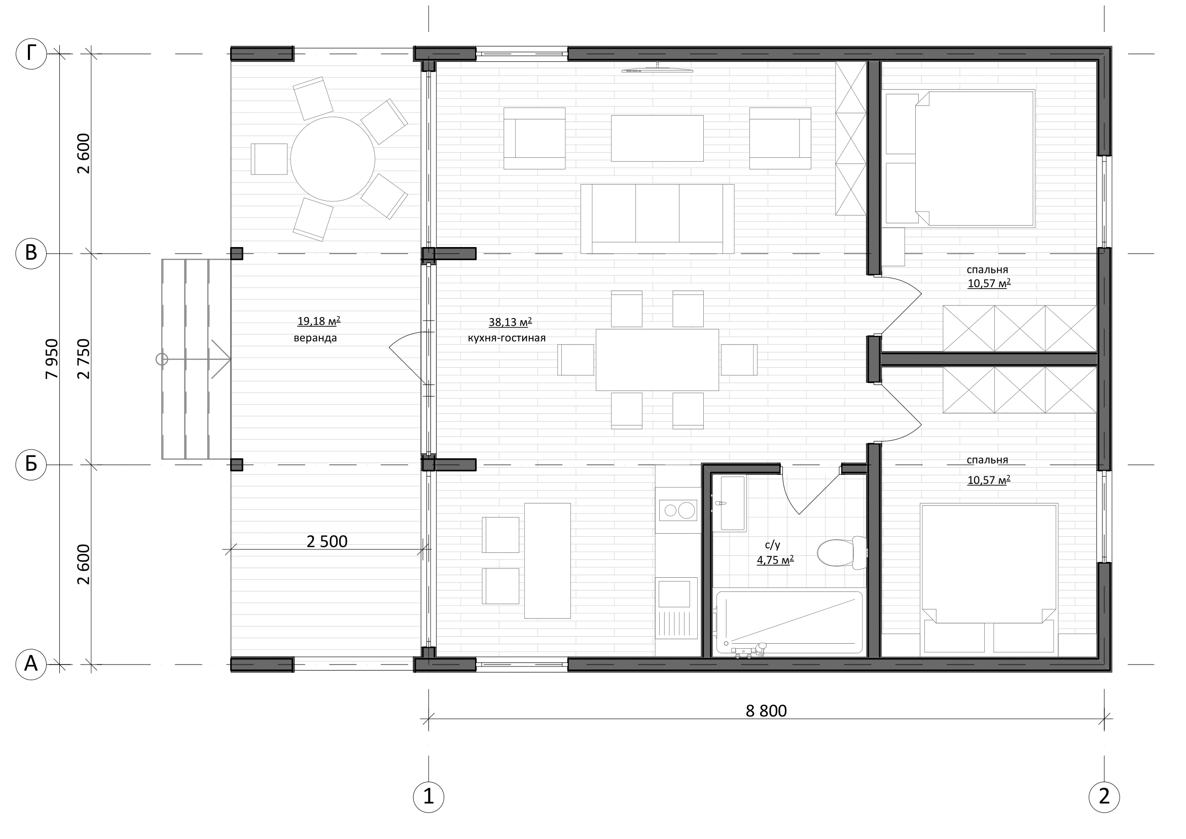 Утепление перекрытия, наружных стен и кровли — 200 мм.