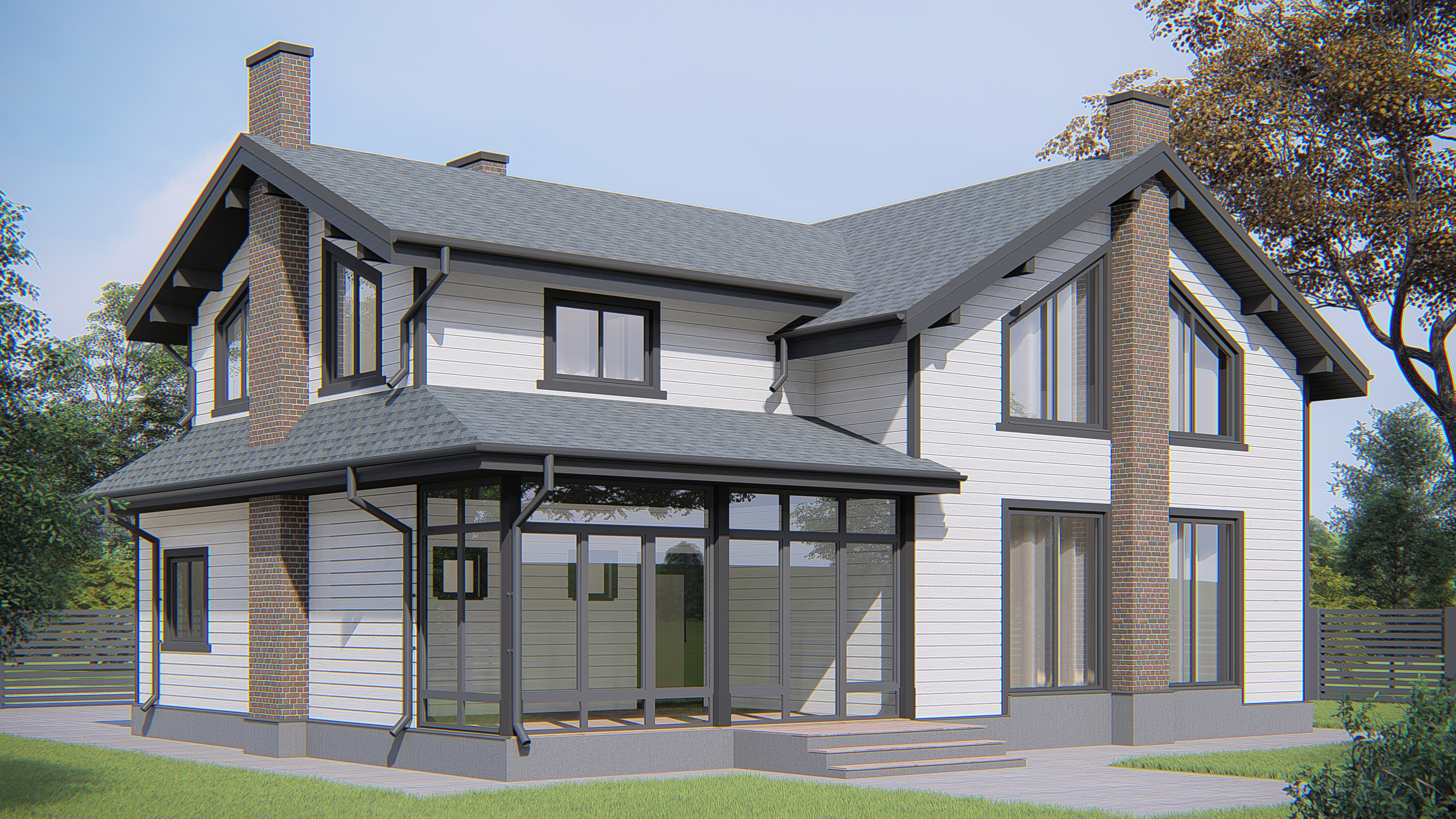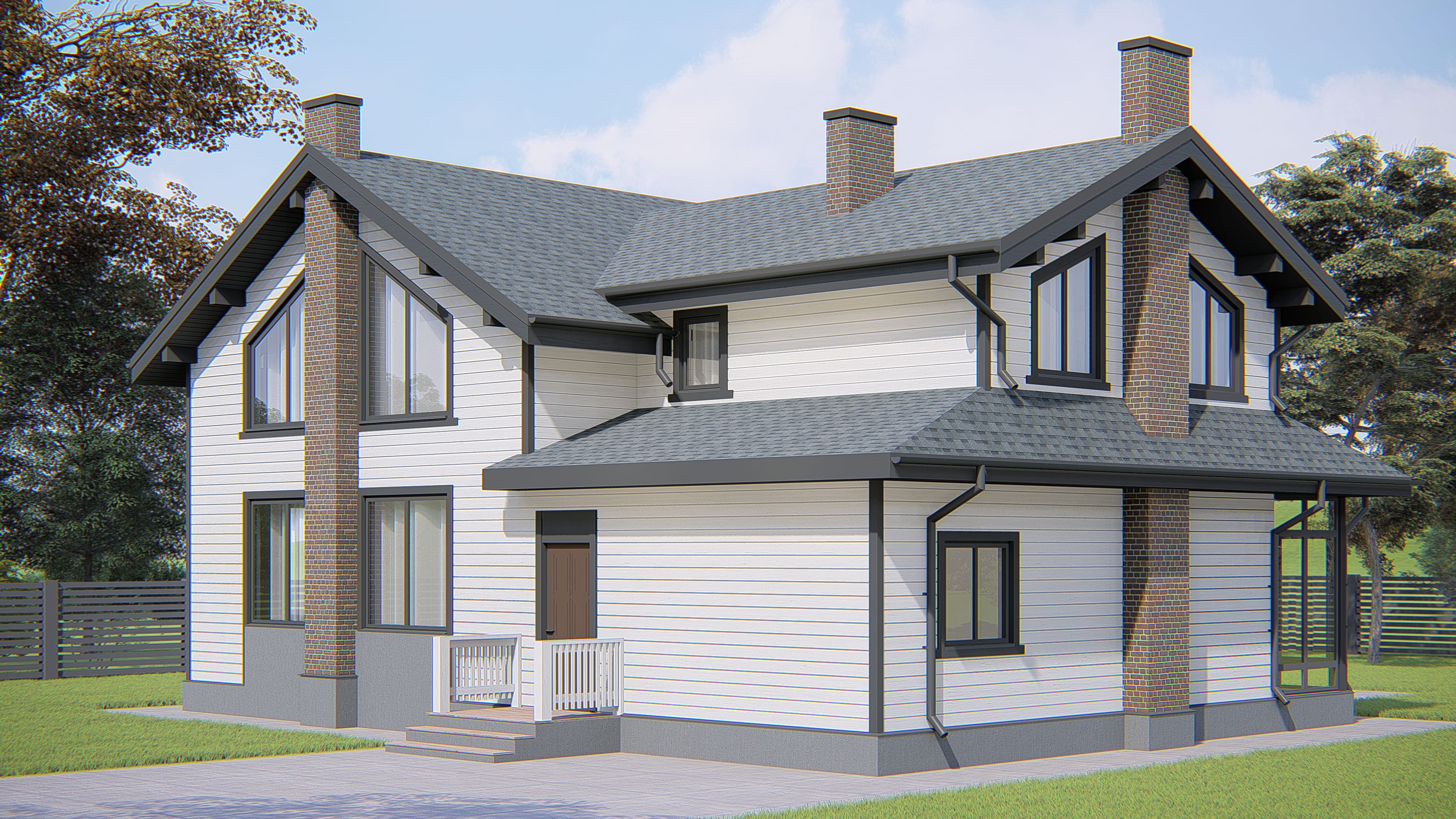 Обналичка окон и углы дома выполняются из сухой доски, окрашенной.