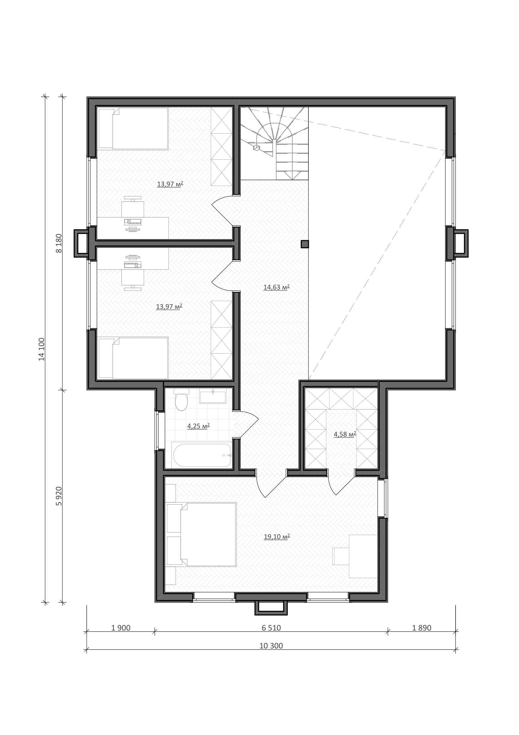 Крыша - Покрытие гибкой черепицей. Потолок - обрешетка из доски 25*100мм.
