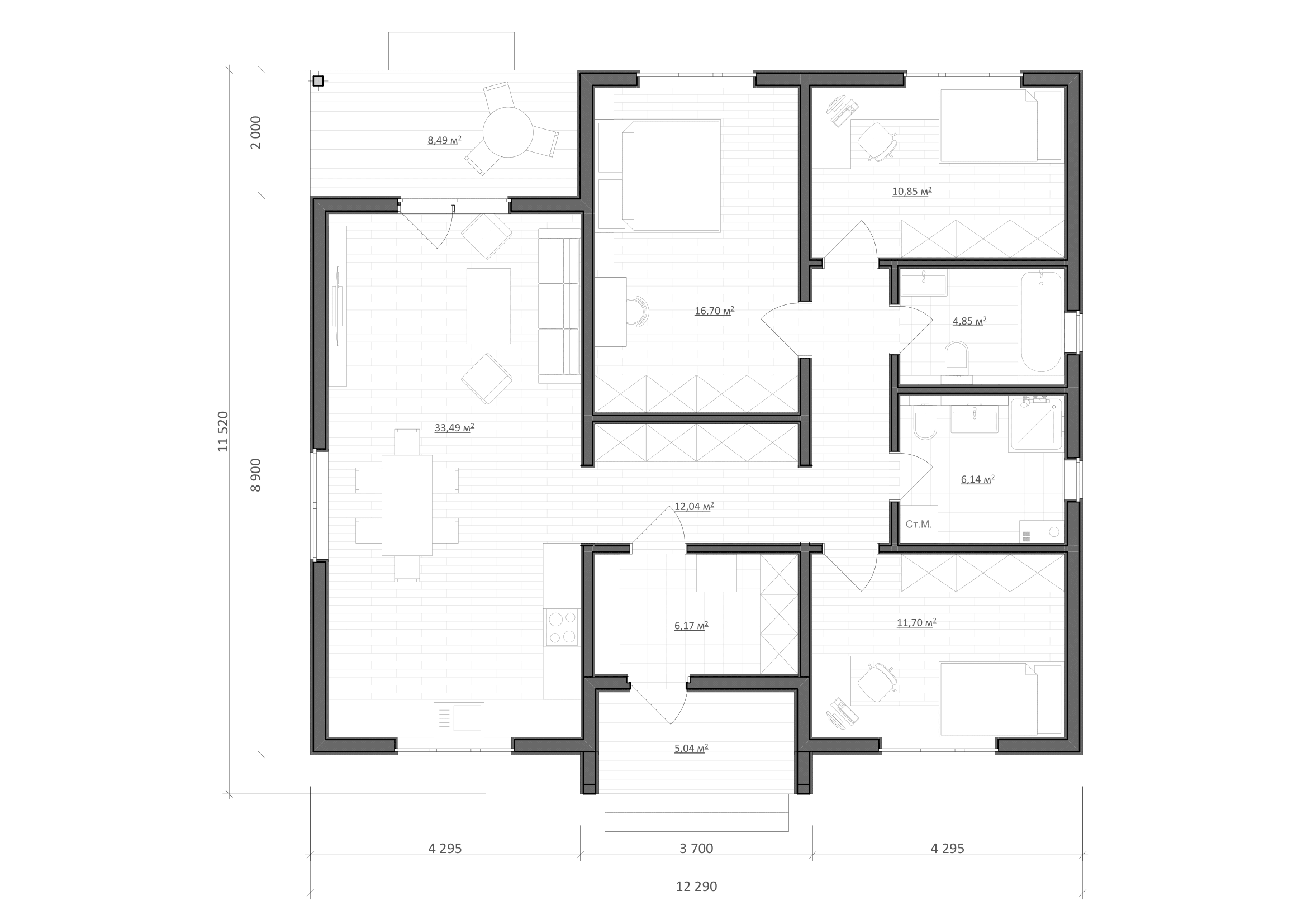Входная дверь - Металлическая утепленная. Выходы на террасу - ПВХ профиль (по типу окна)