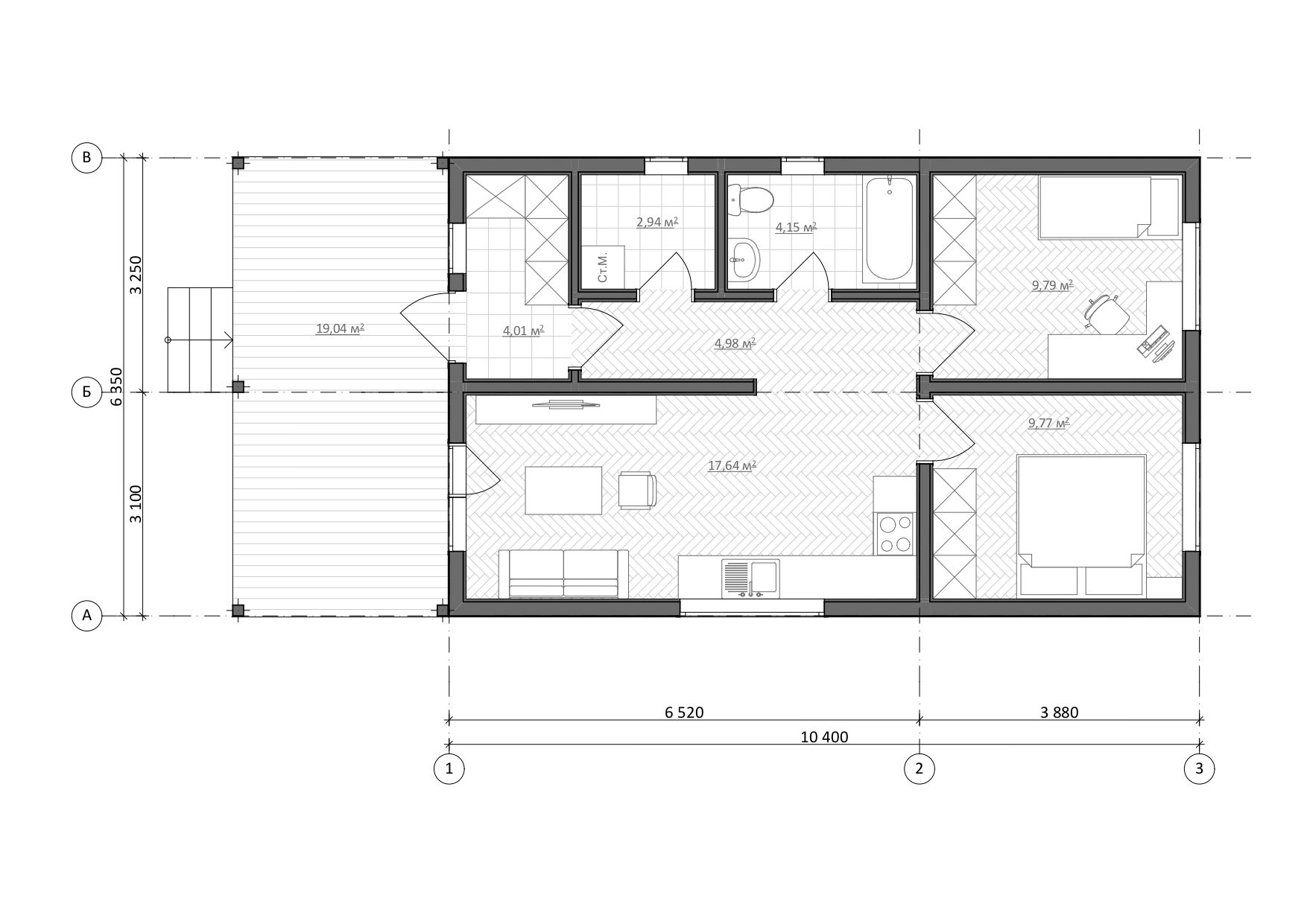 Каркас - Наружные стены и стропильная система из доски 45*195 мм.