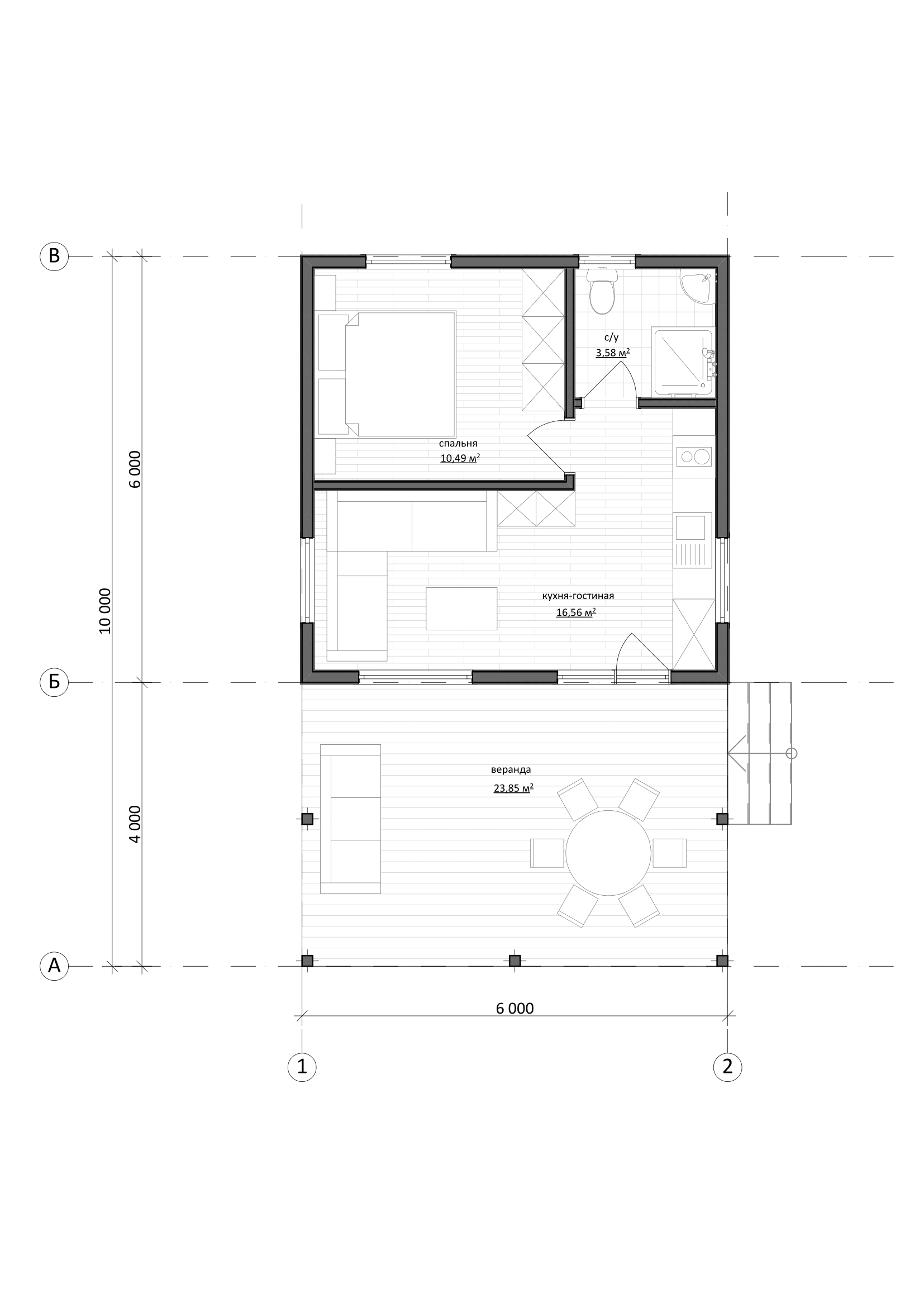 Крыша - Покрытие гибкой черепицей. Потолок - обрешетка из доски 25*100 мм.